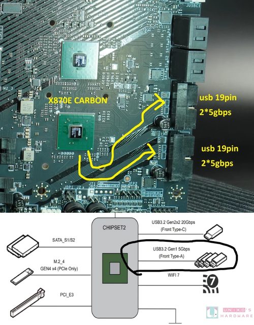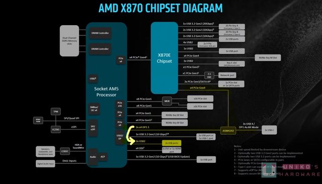 多),卻又在 X870 CHIPSET DIAGRAM 提到晶片組那 4 個 USB 10 Gbps,也可以改為提供 4