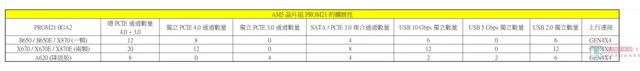 0 組 PCI-E 可用通道,但板廠無一有表明當使用 PHOENIX 2 APU 時,USB4 的部份將受影