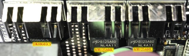 ▼電源供應器滿載輸出下OptiSink子卡上APFC DIODE/APFC MOSFET/一次側MOSFET的正面(