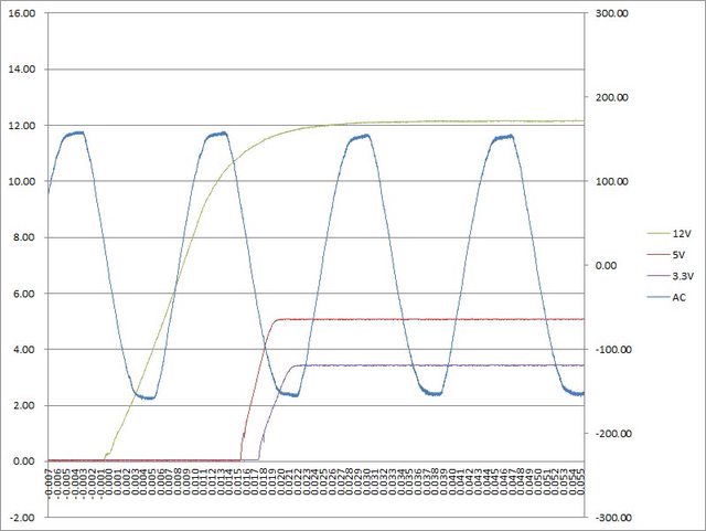 ○電源啟動至綜合全負載輸出狀態,12V上升時間37ms,5V上升時間4ms,3.3V上升時間