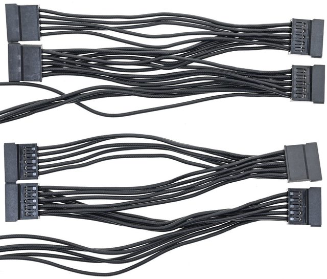 ▼2條SATA模組化線路,提供8個直式SATA接頭,至第一個接頭線路長度50公分,接頭間線