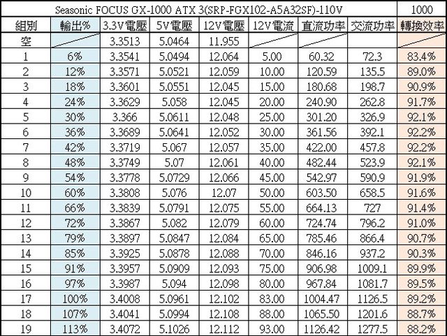 ○20%/50%/100%輸出轉換效率分別為91.1%/91.95%/89.08%,滿足80PLUS金牌認證要求