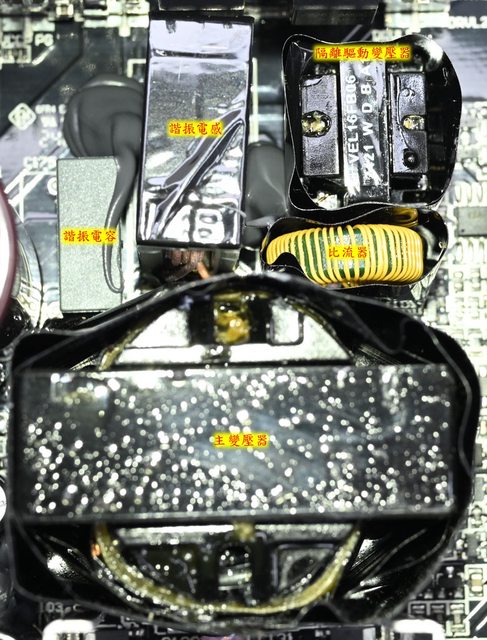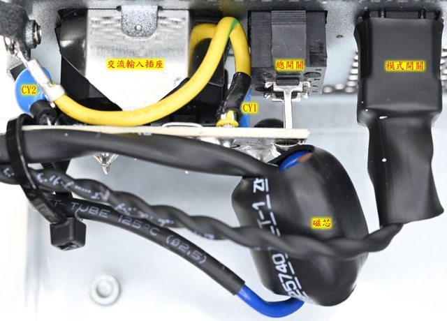 ○磁芯/交流電源線/模式開關本體/模式開關線路/主電路板保險絲有包覆套管,交流輸入
