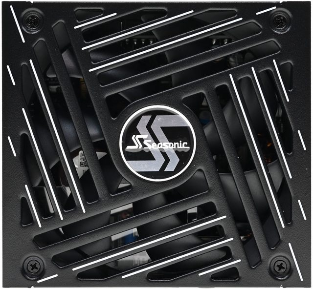 ▼直接在外殼上沖壓大型開孔風扇護網,護網部分肋條有白線裝飾,中間有Seasonic商標