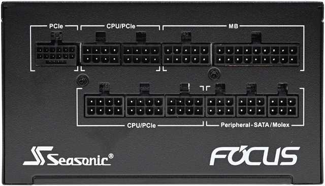 ▼模組化線組輸出插座有名稱標示,左下方有Seasonic商標,右下有FOCUS標誌