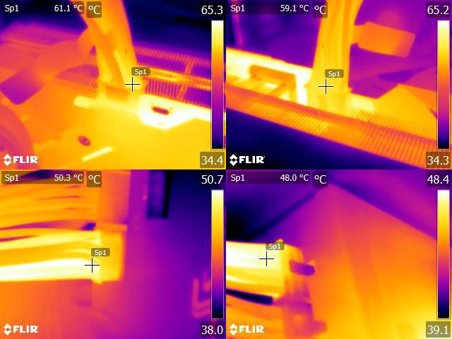 ▼執行FURMARK 30分鐘後顯示卡端插頭(左上/右上)及電源端插頭(左下/右下)的紅外線熱