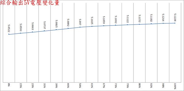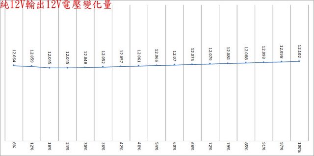 ○綜合全負載輸出下12V/5V/3.3V各路低頻漣波分別為14.8mV/16.4mV/10.4mV,於純12V全