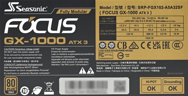 標題[開箱] 海韻FOCUS GX-1000 ATX 3金牌全模組電源