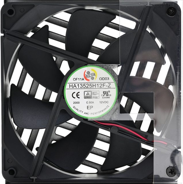 ▼採用HONG HUA HA13525H12F-Z 12V/0.5A風扇,並設置氣流導風片