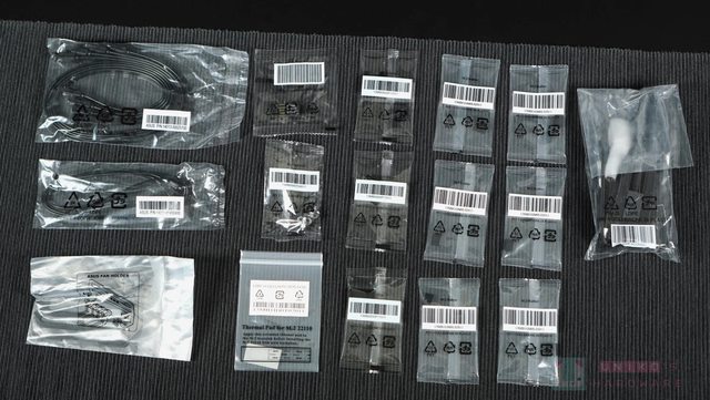 展線材、22110 的 M.2 導熱貼、前置面板集線器 Q-CONNECTOR、6 顆 M.2 單面用的軟墊、