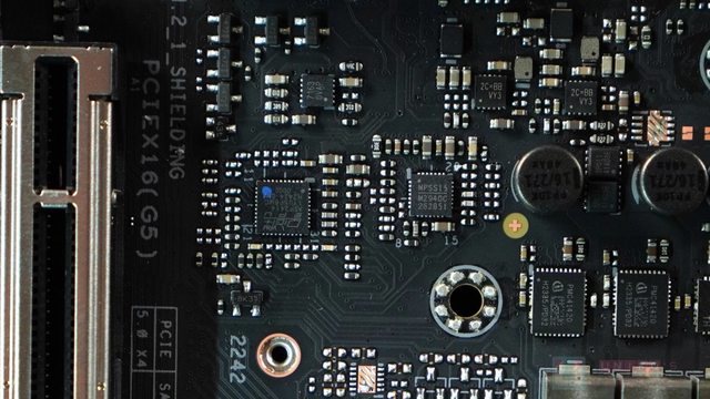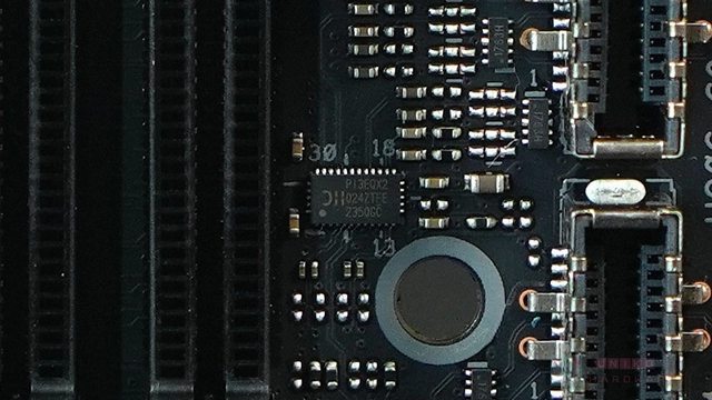 ‧ 在 PCIEX16 (G5) 下方有 2 顆 GENESYS GL9930T PCI-E 3.0 X1 中繼器。在主機板的左