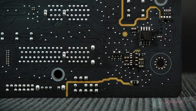 ‧ PCB 背面有 2 顆 GENESYS GL9932S GEN4X2 中繼器,負責晶片組至 PCIEX16 (G4) 的訊