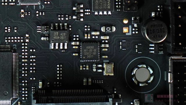 ‧ 在 M.2_1 插槽的左邊,有 1 顆 ALGOLTEK AU6260 USB 2.0 HUB,以 1 個上行擴展最多