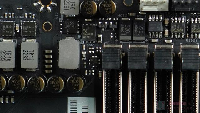 ‧ 兩組 GEN5 PCI-E 插槽之間,共有 4 顆 PHISON PS7101 GEN5X2 通道切換器,一同負責