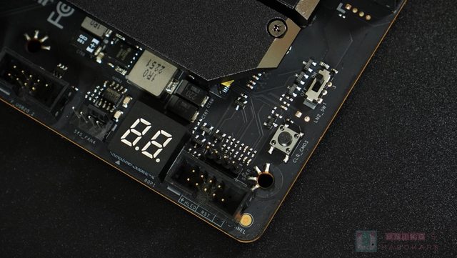 來到正面下半部,基本上被金屬的音效裝甲、M.2 散熱器、以及南橋散熱器覆蓋,第一眼就