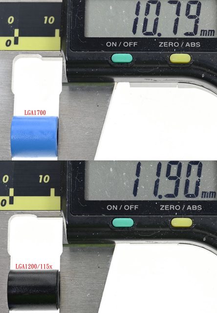 ▼LGA1851/1700藍色套管長度10.8mm(上),LGA1200/115x黑色套管長度11.9mm(下)