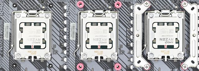 ▼安裝於AMD AM5/AM4平台時,需要AMD托架固定螺絲(左)及AM4/AM5紅色套管(右)