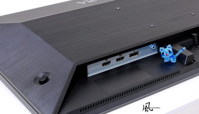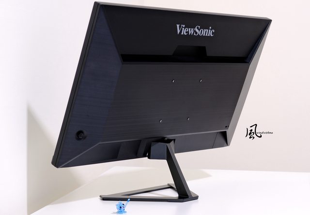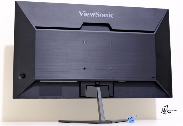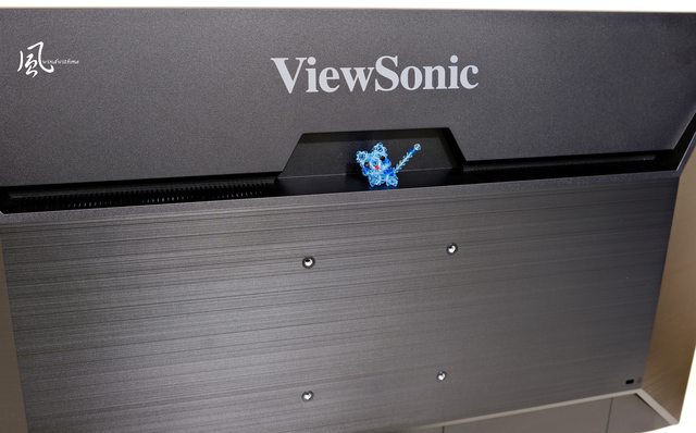 上方有著銀色ViewSonic品牌字樣,左右兩邊為長條式散熱孔,中央支援VESA壁掛孔距