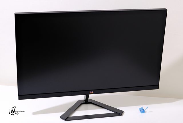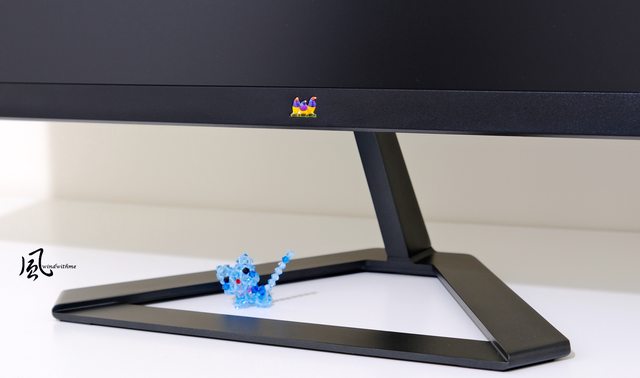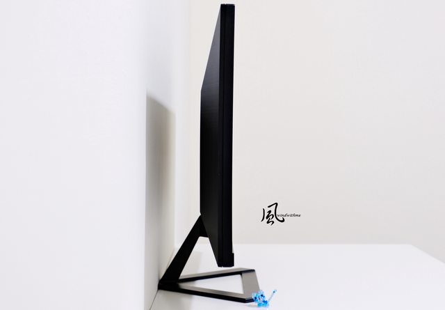 支架往下俯角-5º,下方邊框右側為電源燈號,上左右3側無邊框設計讓畫面視覺感更大