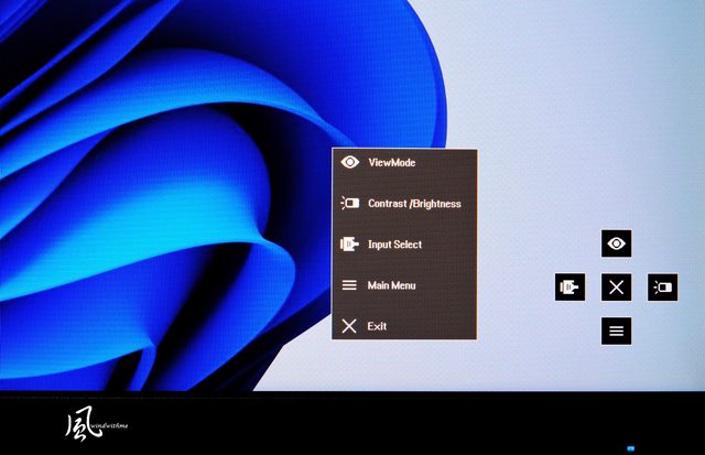 OSD有快速設定模式,上下左右4種選項對照後方按鈕,方便設定使用。