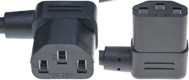 ▼連接電源供應器交流輸入C14插座的L型C13插頭,額定電流為10A