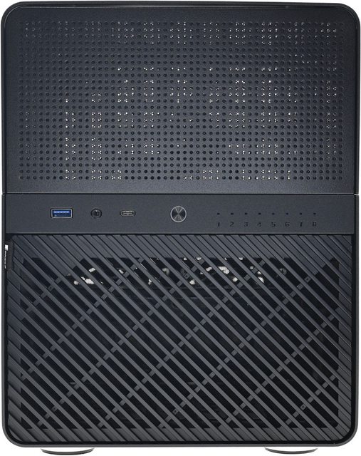 ▼正面上方配置網孔板,下方配置磁吸格柵,中間區域由左至右分別是USB3.2 Type-A、4