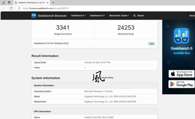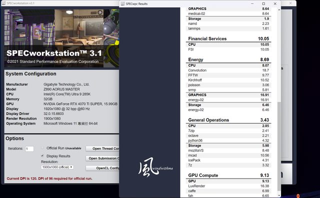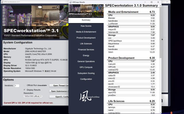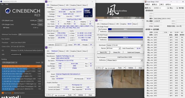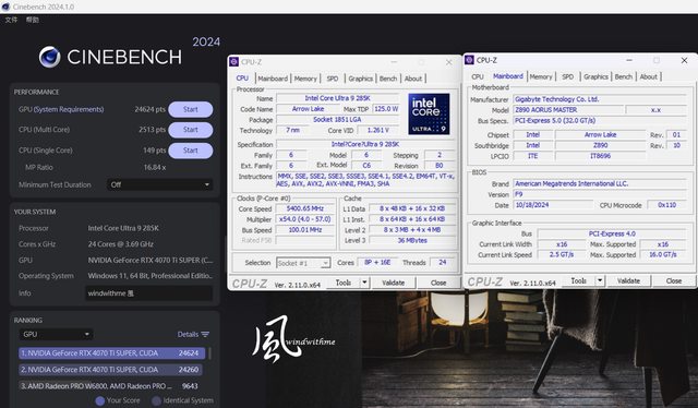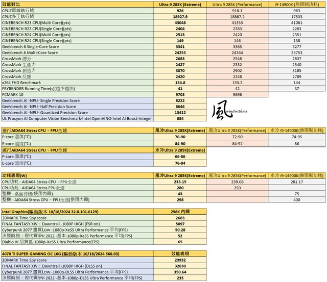 本篇Intel Core Ultra 9搭載Z890 AORUS MASTER實測數據表格: