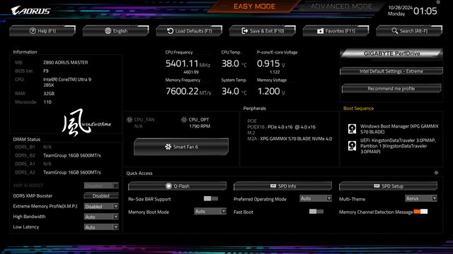 MB: Z890 AORUS MASTER / BIOS:F9