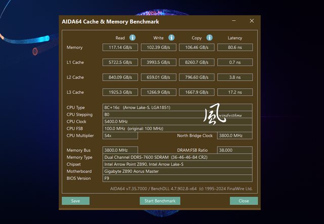標題[測試] 風冷Intel U9 285K搭載Z890 AORUS MASTER