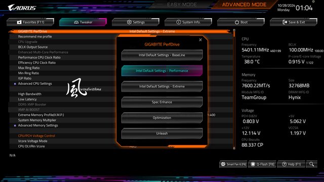 GIGABYTE PerfDrive提供6種不同模式的選項,其中Intel預設設定有BaseLine、