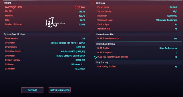 安裝4070 Ti SUPER時刺客教條:奧德賽測試模式瞬間最低359W與最高416W、大多時間約