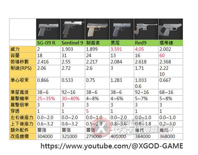 初始手槍、DLC手槍哨兵9、麥格農的K7