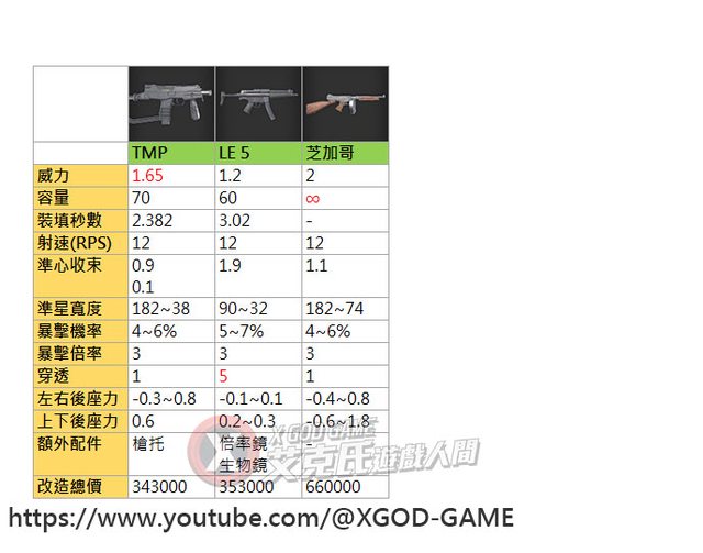 其餘先後順序為威力、射速(連射力)、裝填速度、容量