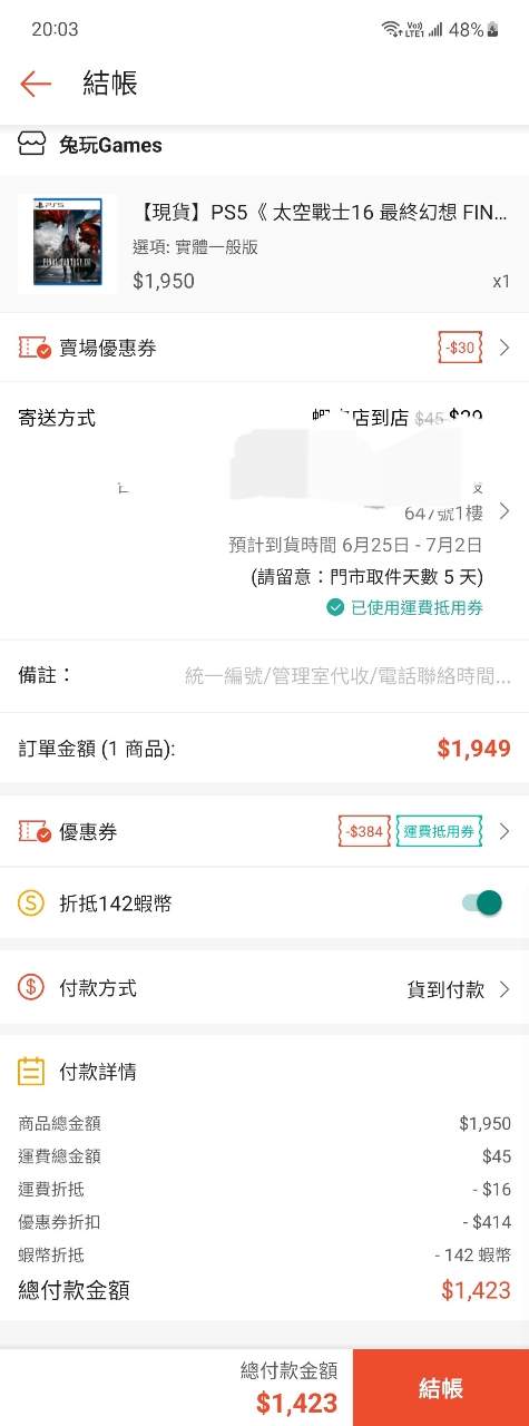 推 jueda: 買巴哈的不要送全家,全家偶爾會慢到,7-11都會準時,買到 06/23 21:26