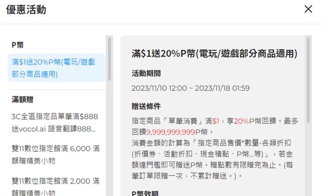 我打算晚點再來買一些配件,因為剛剛發現配件類有20%P幣回饋
