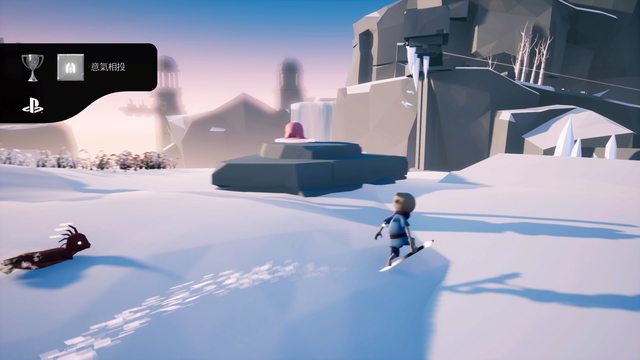 當你學會滑行後,雪地有一隻生物(賽芬恩)會跟你一起滑,滑30秒跳盃。