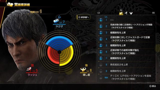 標所構成的「覺醒度」。提升覺醒度有諸多好處,像是可強化桐生專用職業「堂島之龍」