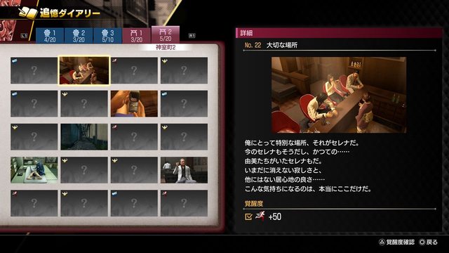 店用餐、唱卡拉 OK、擊敗敵人等各種任務,達成後就能提升桐生的覺醒度。