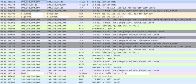 wireshark看flow,PS5和終端裝置(電腦)在區網下應該就是兩端封包互丟,這樣只