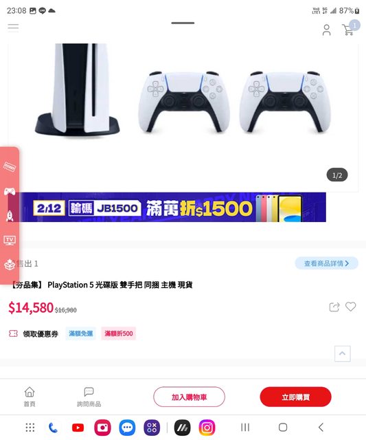 標題: [情報] 舊ps5光碟版 雙手把組 14580 有閒
