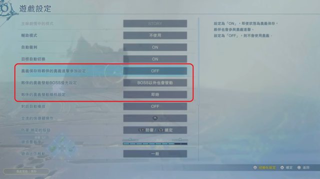 「奧義保存夥伴奧義連擊參加設定: OFF」