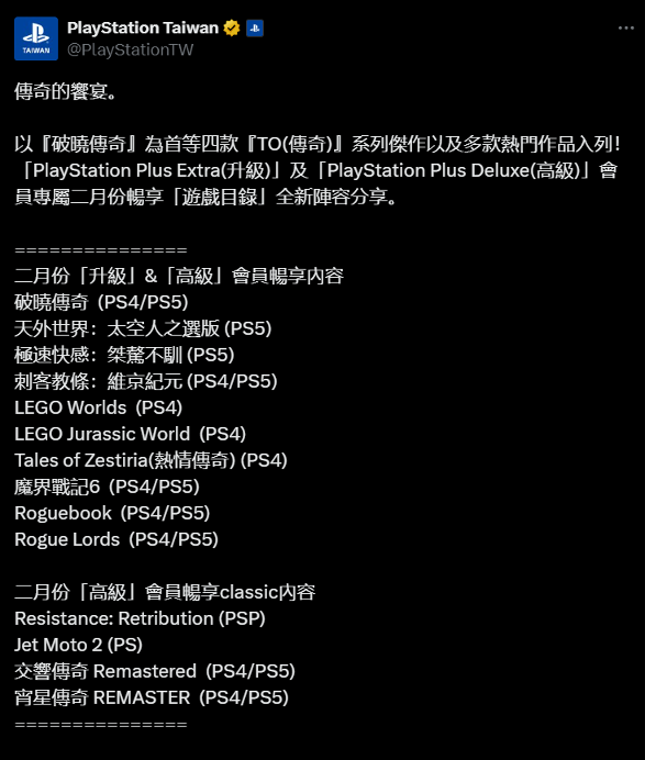 → kuku321: TO在PS4以後的整套都上了 看來今年TO Fes有機會宣布新作02/15 12:25