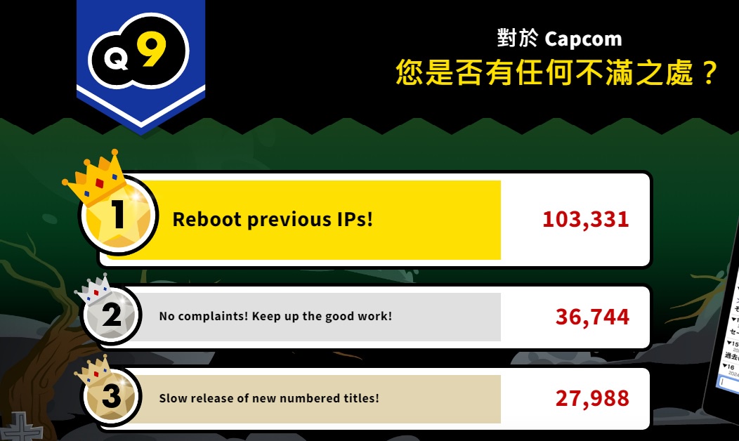 Burtgang: 後面有一個對CAPCOM最不滿的是啥,第一名是炒冷飯 06/12 19:09
