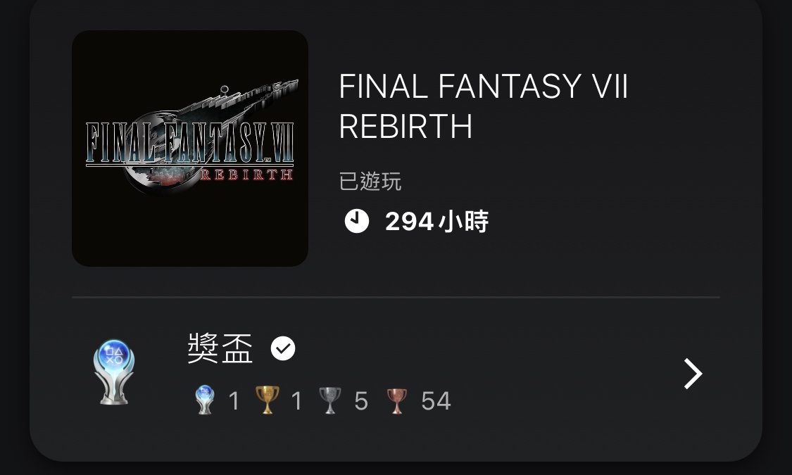 但是FF7重製就是我當初第一個完成的白金盃