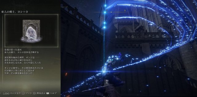 夜與火之劍的戰技,分別是普通攻擊的「黑夜彗星(夜の彗星、Night Comet)」,以及