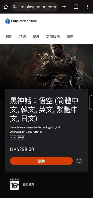 ShenMue: 台灣 PSN 沒有,香港有。08/01 17:02