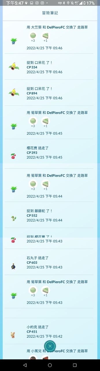→ Sheng98: 抓到臭臭花, 還順便撈到一隻 IV100 走路草 (野生, 非模組 04/24 11:46