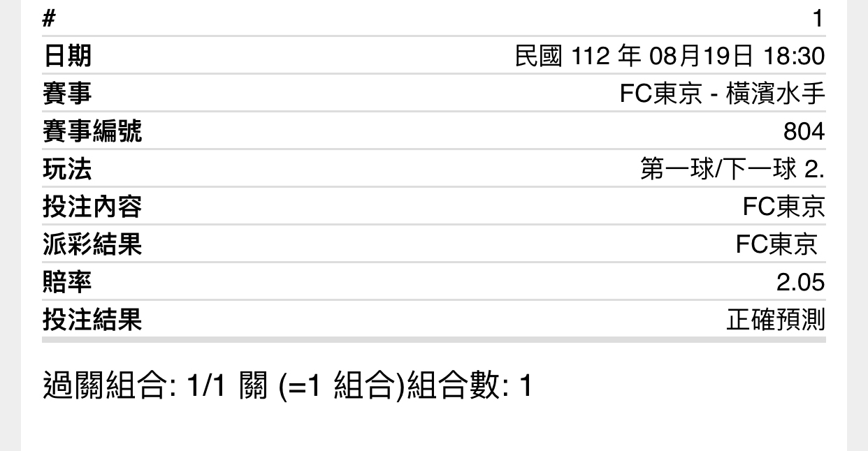 推 ericaaa: 賠率真的準 42.72.5.157 08/19 20:24