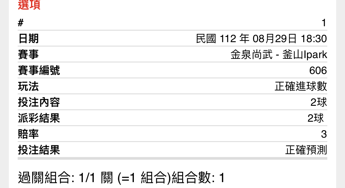 Himiko9975: 多少賠啊 只買到2.30 114.26.2.133 08/29 19:14