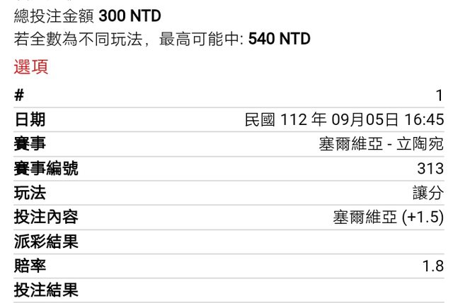 ※ 文章網址: https://www.ptt-web.org.tw/SportLottery/M.1693887949.A.90B